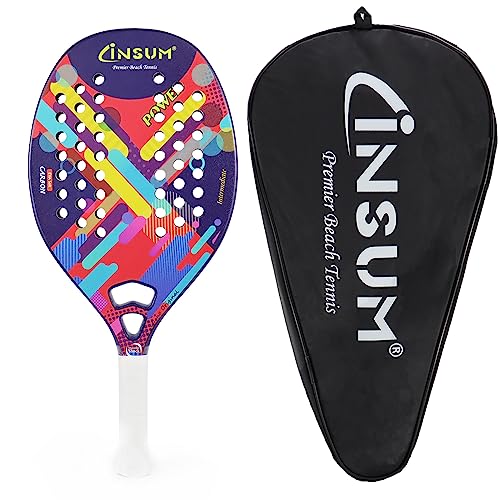Specification: Beach Tennis Racket Carbon Fiber Surface with Sand Grit Print, Lightweight EVA Soft Racquet, with Cover Bag for Carry