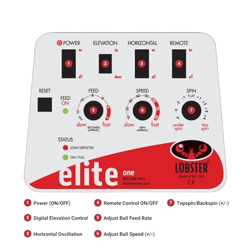 Specification: Lobster Sports Elite Tennis Ball Machine with External Battery – Auto Portable Ball Launcher, Preloaded & Custom Drills, Spin Control, Elevation Switch, Speeds up to 80MPH, with Multi-Function Remote