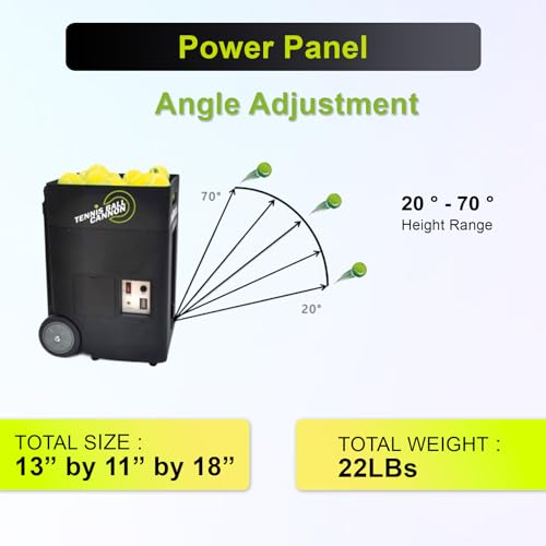SUPER LIGHTWEIGHT AND SMALL: Designed for maximum durability, the tennis ball cannon has been manufactured to hold up against constant use. The 22-pound ergonomic design is 13” Deep x 11” Wide and 18” Tall.